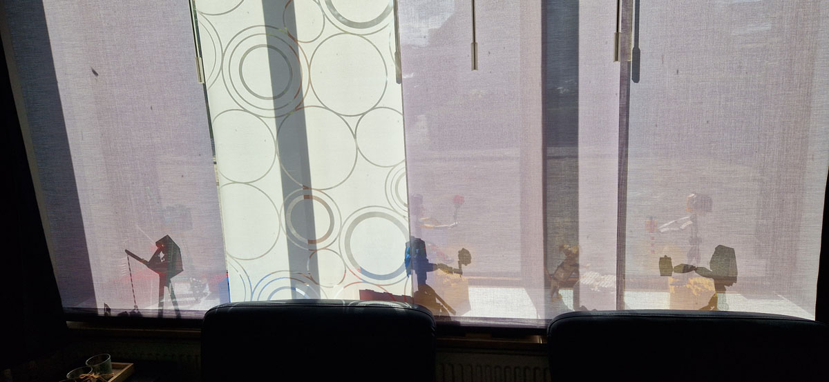 Van binnenuit is het een mooi schaduwspel. Ook als wij binnen zitten, kunnen we nog genieten van deze figuurtjes.