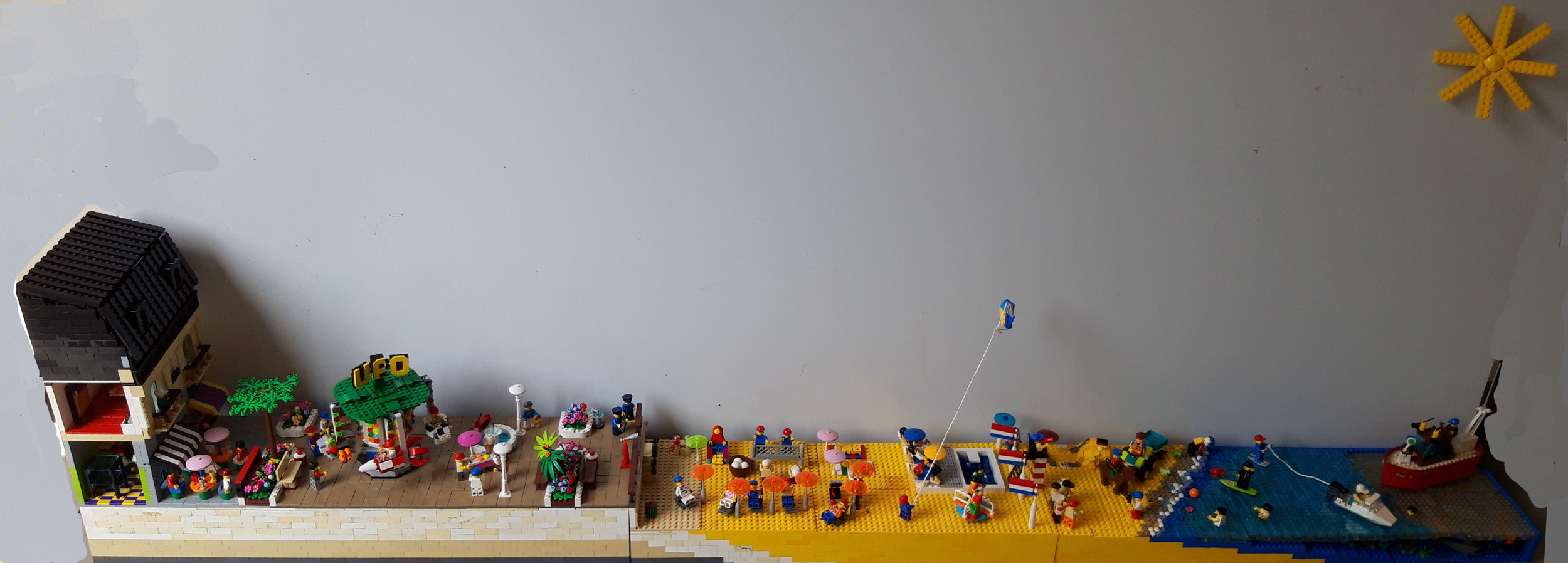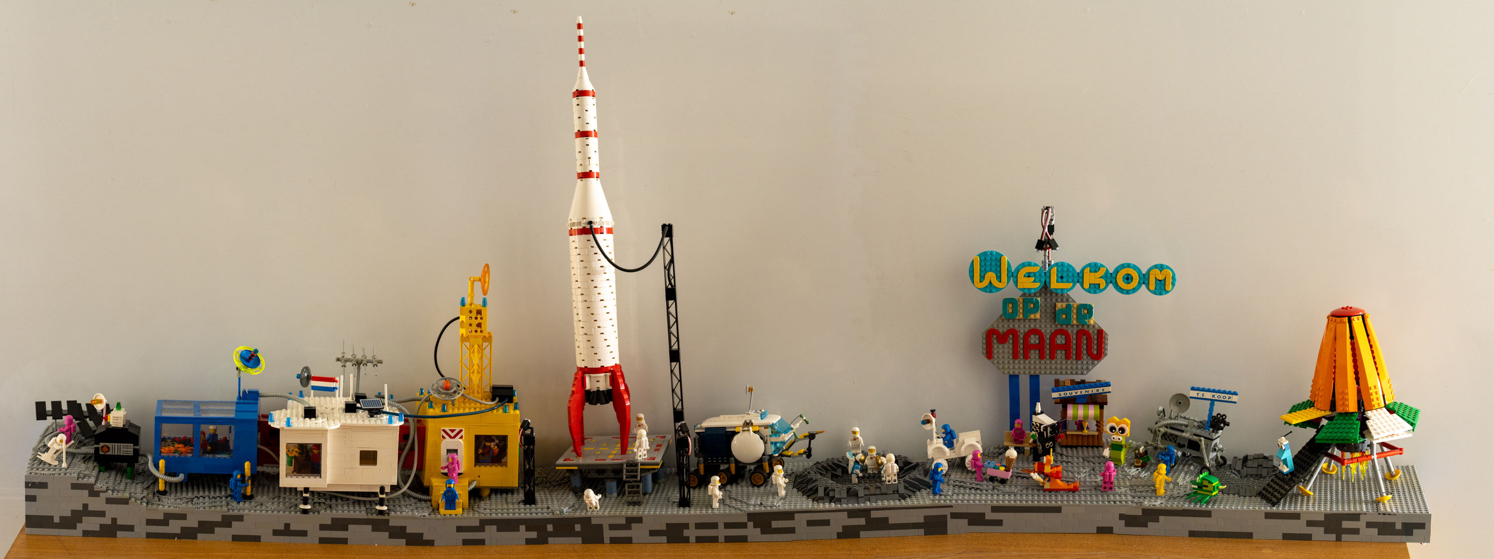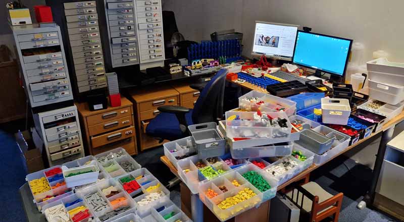 LEGOLEGO is altijd een hobby geweest, van kinds af aan. Ik heb het nooit helemaal los gelaten. Als kind was het bouwen, als tiener was het de technische lego, de laatste paar jaar is het de creatieve kant van de lego. Ik heb er lol aan om iets leuks van lego in onze vensterbank te plaatsen. Onze vensterbank is 252 noppen breed en 30 noppen diep. In normale mensentaal is dat 2 meter breed en 24 cm diep. Zo 2 a 3 keer per jaar probeer ik iets leuks te maken voor de vensterbank. Voor de productie van deze lego creaties heb ik een heel mooie LEGO man-cave ingericht. Rekken met bakken voor de grotere lego blokjes en vele lades voor de kleine LEGO stukjes Alles netjes geordend op soort en kleur zodat ik snel kan pakken wat ik wil hebben. De computer gebruik ik om inspiratie op te doen hoe iets uit ziet en om ontbrekende lego blokjes te bestellen. En natuurlijk ook om radio, TV of muziek op te zetten als ik aan het bouwen ben.